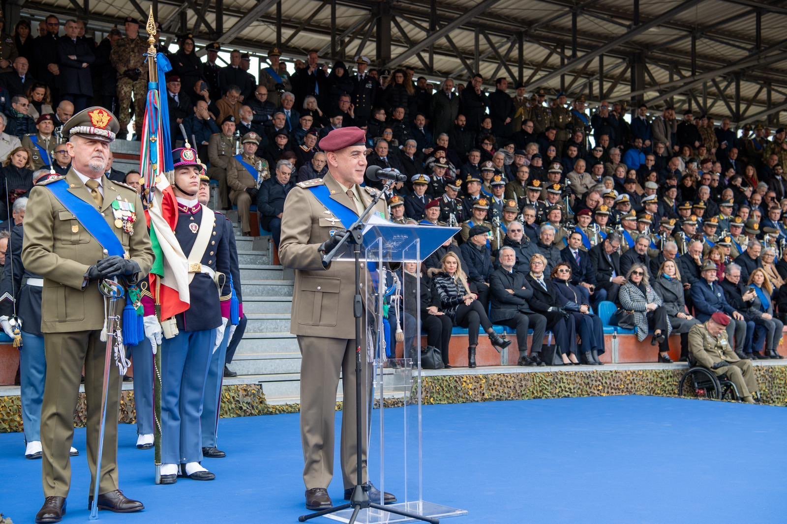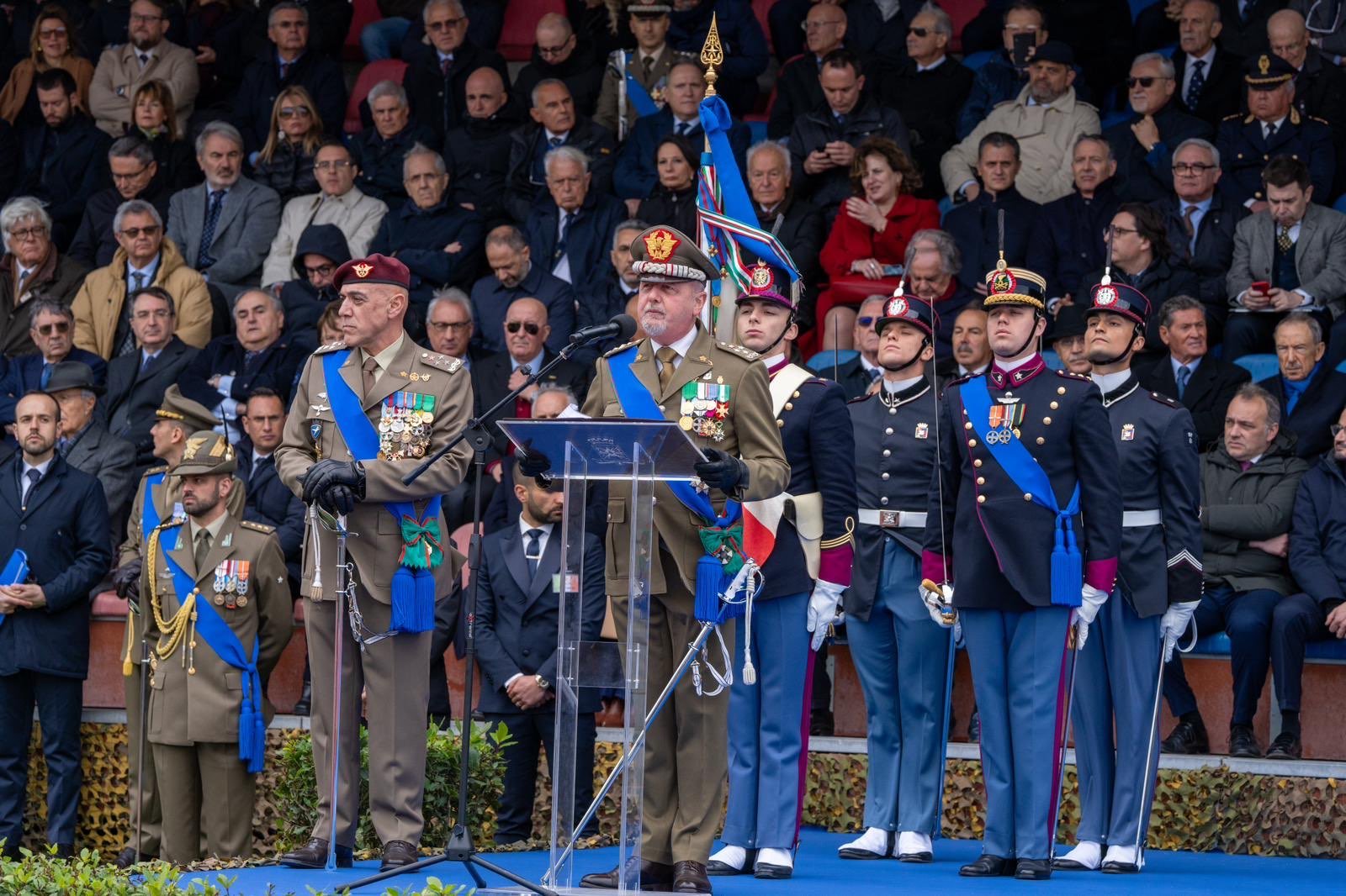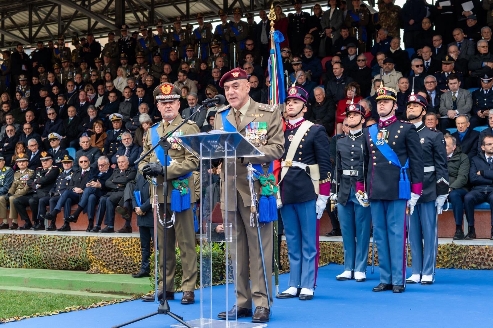 “Soldati, di ieri e di oggi dall’immutato impianto valoriale, sempre generosi e orgogliosi di servire la Patria. I miei maestri e professori mi hanno insegnato che un Soldato ha tanti superiori, ma solo due padroni: la Legge e l’Etica” ha poi aggiunto. Nel rivolgere un indirizzo di saluto ai rappresentanti del Parlamento presenti, ha affermato: