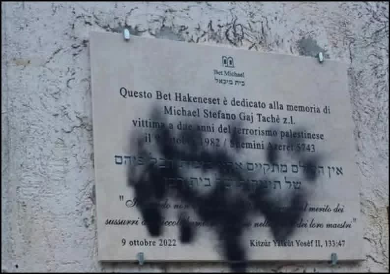 A farne le spese, in questi giorni, è stata proprio la lapide a lui dedicata e apposta sulla facciata della sinagoga di Monteverde, a Roma