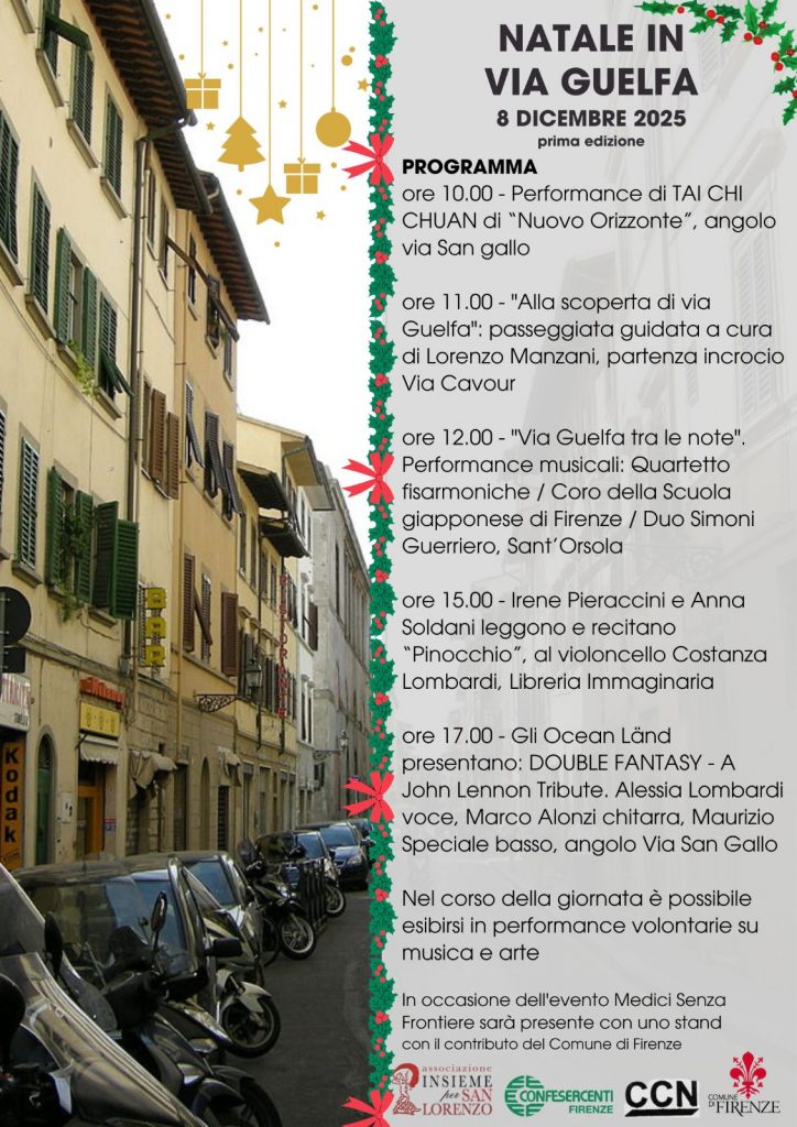 Per questo, iniziative come “Natale in Via Guelfa” assumono oggi un valore nuovo e prezioso: portare luce e colore dove la luce si è affievolita, e il colore sbiadito, riportare cultura dove la cultura arretra, invitare le persone a riappropriarsi degli spazi della città in modo sano, partecipato, creativo
