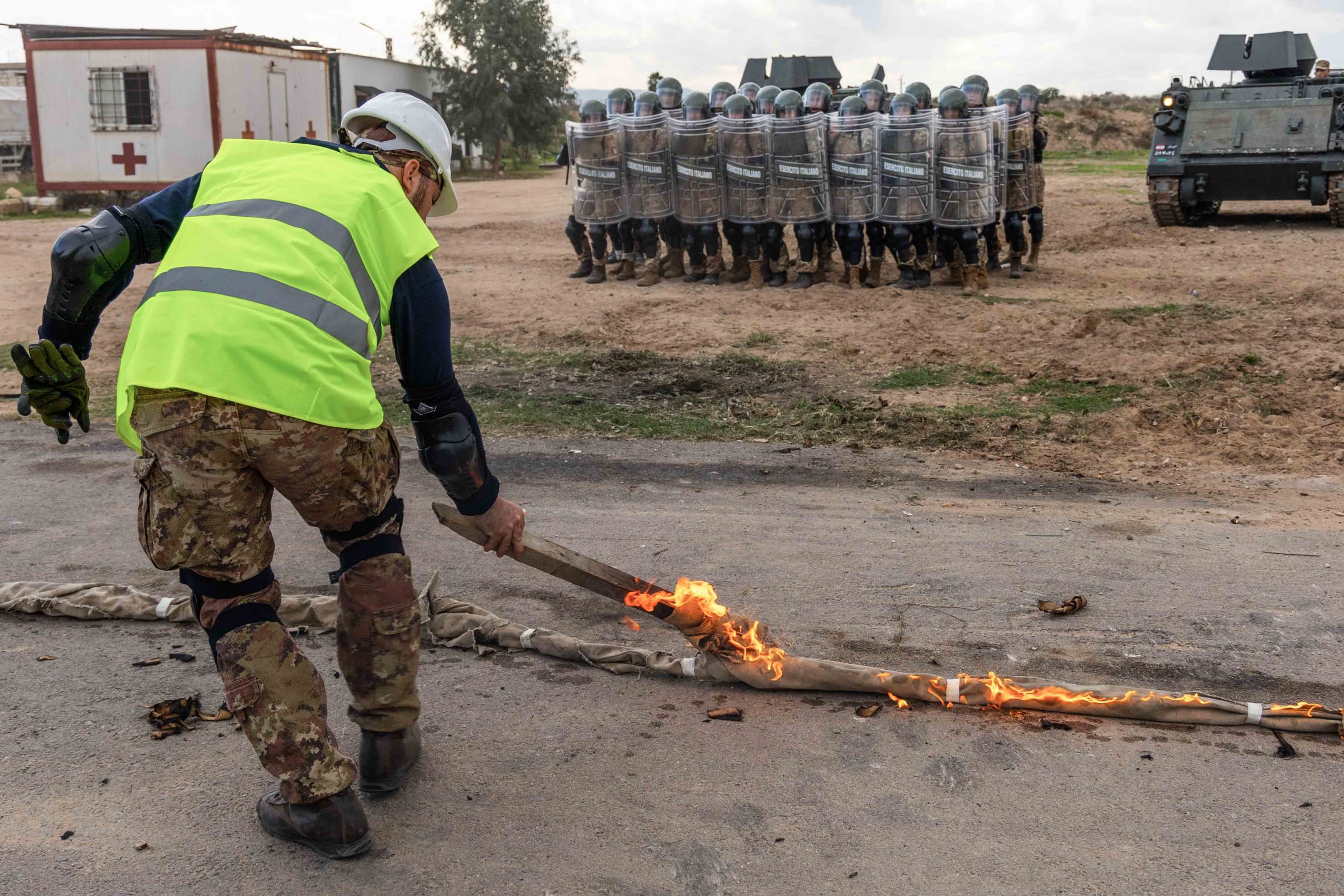 L’ultimo modulo addestrativo appena concluso, sviluppato congiuntamente con la 5^ Brigata delle LAF, ha avuto per tema la reazione ad eventi di protesta e controllo delle folle, con lo scopo di armonizzare le rispettive procedure tecnico-tattiche. In particolare, la progressione addestrativa ha visto, nella sua fase iniziale, approfondire le tecniche di movimento congiunto e le formazioni in assetto anti-sommossa, per poi focalizzare l’attenzione sulla dispersione dei facinorosi e il ritorno all’ordine costituito.