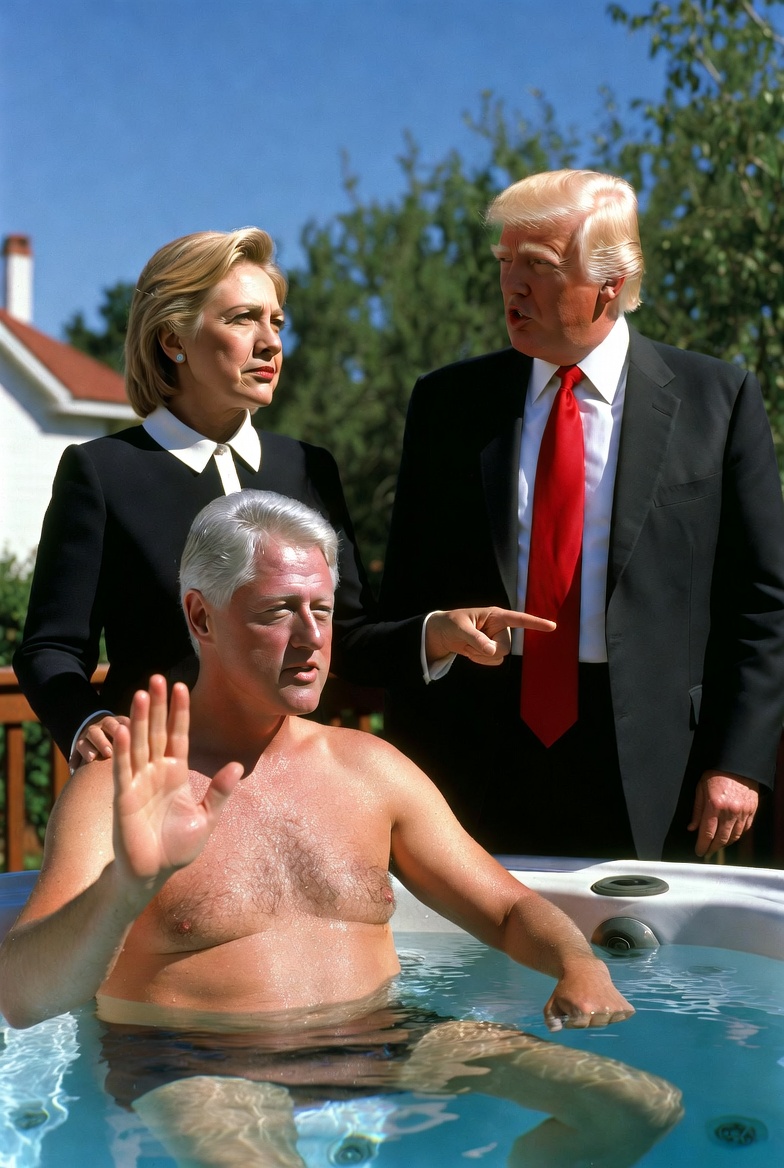 Lo scandalo Epstein: Clinton nega tutto sulla foto nella vasca idromassaggio, Hillary punta il dito su Trump